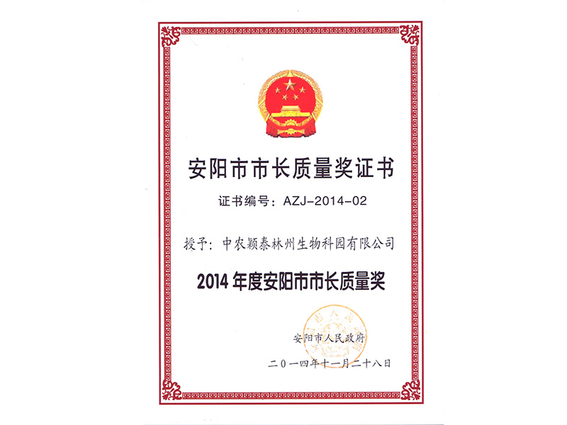 安陽(yáng)市市長(zhǎng)質(zhì)量獎(jiǎng)證書(shū)