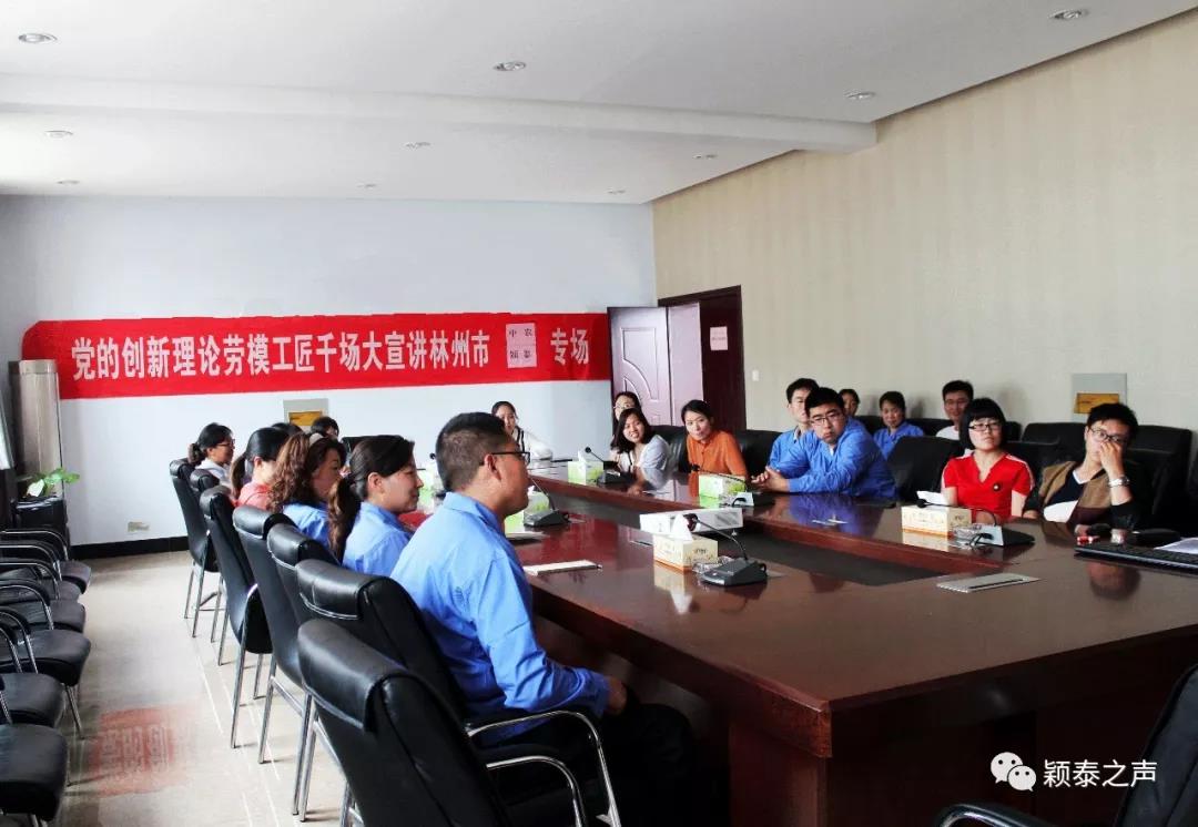 2018年5月11日下午2點30分,“黨的創新理論勞模工匠千場大宣講林州市中農穎泰專場”宣講,在中農穎泰一樓會議室如期舉行,安陽市勞模王懷德分享了自己在工作和生活中對黨的精神理論的心得體會,中農穎泰各部門積極聽取勞模的事跡。
