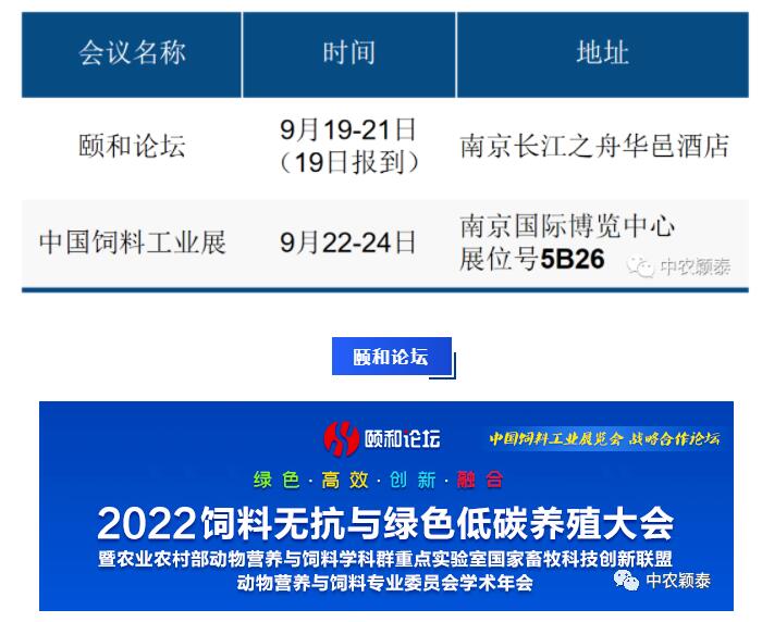 [邀請函]中農穎泰與您相約南京2022頤和論壇+飼料工業展