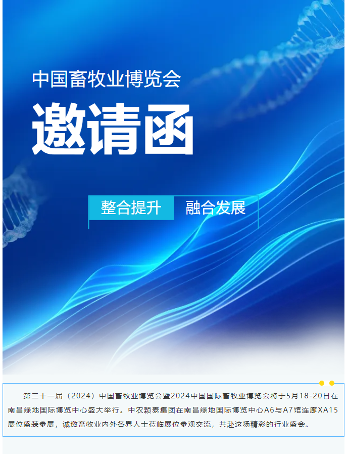 邀請函丨5月18日中農穎泰誠邀您相約南昌畜博會XA15展位